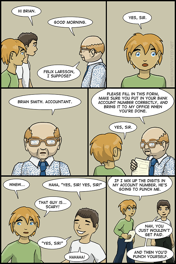 Brian was among the first few characters I came up with, and it still took 43 comics for him to show up. (Things I need to practice drawing: glasses.)